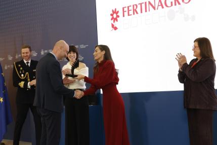 La reina Letizia ha entregado esta distinción a la compañía de fertilizantes tecnológicos, que destina anualmente más de 5 millones de euros a innovación y cuenta con 17 proyectos de investigación en curso, en una ceremonia a la que han asistido el director general de Fertinagro, José Luis Moya y su director de Desarrollo Estratégico e I+D+i, Sergio Atares.