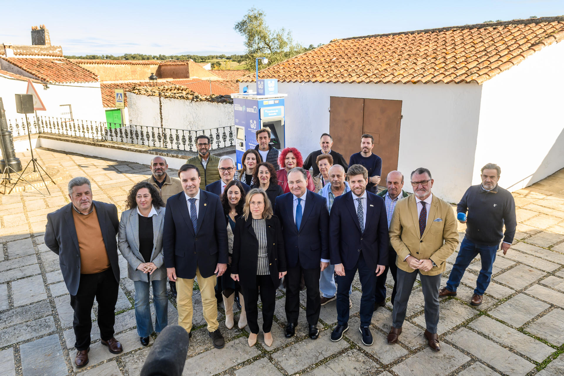 Casi a los pies de la iglesia y en frente del Ayuntamiento ha quedado instalado el cajero en este pueblo serrano, el primero de los 38 que la Diputación de Huelva, en colaboración con los Ayuntamientos, va a instalar en distintos pueblos y aldeas de la provincia durante la semana. Así lo ha destacado en declaraciones a los medios el presidente de la Diputación, David Toscano, acompañado por María Reyes Páez, alcaldesa de Cumbres de Enmedio, quien no ha dudado en destacar la importancia de este día para su municipio por poder contar con este nuevo servicio.